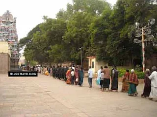 మీరు చూస్తున్న ఈ లైన్ అమ్మవారి దర్శనం చెయ్యడానికి నిలబడినవారు. మీనాక్షి అమ్మవారి ఆలయంలో దర్శనానికి మీరు ప్రత్యేక దర్శన టికెట్ తీసుకోవడం ఉత్తమం. ఎందుకంటే కాస్త దగ్గర నుంచి చూడగలుగుతారు. ఫ్రీ దర్శనం వాళ్ళైతే దగ్గరకు వెళ్ళలేరు పైగా మనం ఎక్కడినుంచో ఇక్కడకి వస్తాం .. దర్శనం బాగా అవ్వలికదా.. టైం కూడా కలిసివస్తుంది.